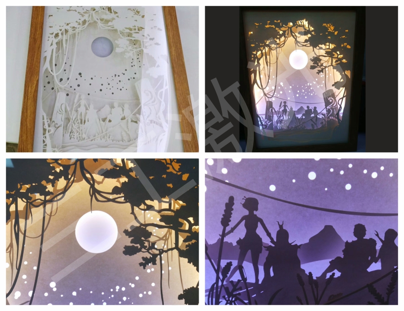 紙本來(lái)是極為樸素的媒介,然而讓人驚訝的是,加上光與影的結(jié)合,居然呈現(xiàn)出這樣神秘而夢(mèng)幻的畫面。光影紙雕燈將中國(guó)傳統(tǒng)元素的剪紙與皮影,以及現(xiàn)代的審美與設(shè)計(jì),巧妙又和諧的融合在一起了。而3D紙雕燈,更是在傳統(tǒng)2D紙雕燈的基礎(chǔ)上進(jìn)行了突破,通過(guò)層疊的紙雕圖案,讓原本樸素的紙張,在光影之下,呈現(xiàn)出神秘而又夢(mèng)幻的畫面。很多人熱衷于采用手工制作的方式來(lái)之多紙雕燈,優(yōu)點(diǎn)在于自己動(dòng)手,可以體驗(yàn)制作的樂(lè)趣,成品也顯得很有意義,缺點(diǎn)在于制作費(fèi)時(shí)費(fèi)力,而且圖案要求制作的很精細(xì)。那么對(duì)于大批量的生產(chǎn)來(lái)講,必定要穩(wěn)定性好,效率高的機(jī)器才能滿足生產(chǎn)需求!而光影紙雕燈激光鏤空機(jī)既是這樣一個(gè)存在。