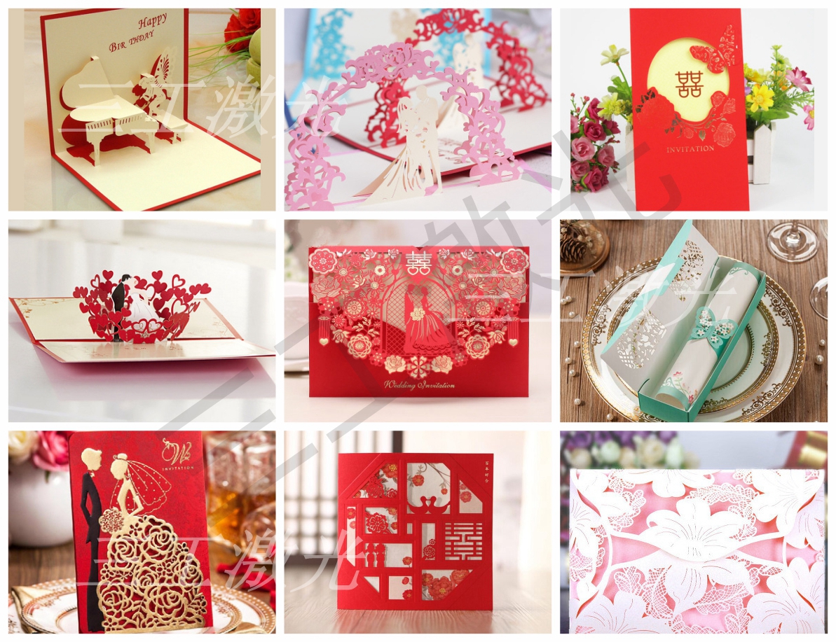 所以,除了賀卡加工之外,在印刷行業(yè)中還有很多的企業(yè)都采用激光雕刻鏤空設(shè)備,例如婚慶行業(yè)中的喜糖盒、請柬、桌卡等一系列紙品,禮盒包裝、書籍名片、窗花剪紙、紙雕藝術(shù)品等等,應(yīng)用范圍非常廣泛!