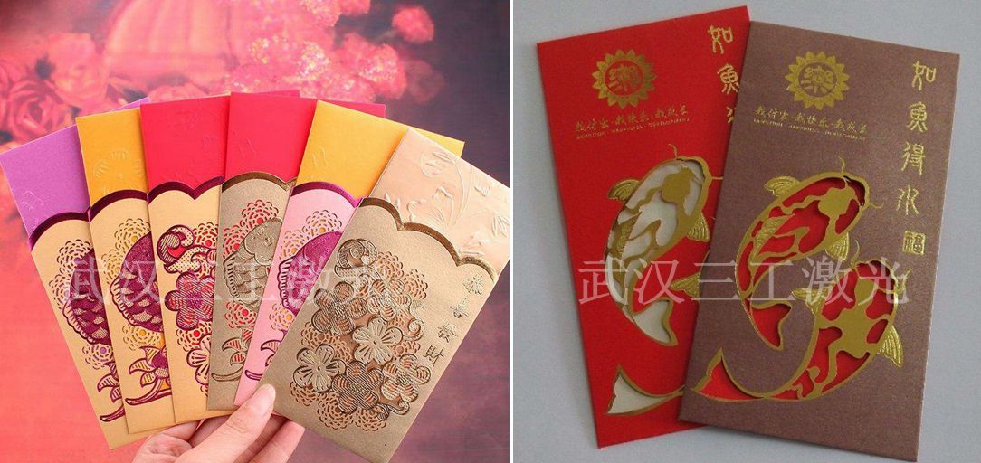逢年過節(jié)包紅包也是比較有中國特色的一項傳統(tǒng),紅包的“內(nèi)容”固然重要,而一份創(chuàng)意十足的外表也很重要。紅包激光鏤空機進行雕刻加工無需開刀模,快速成型,切口平整,圖形可任意形狀,印刷品激光雕刻加工具有很強的立體感,且紅包激光雕刻加工款式新穎,具有加工精度高、自動化程度高、加工速度快、加工效率高。