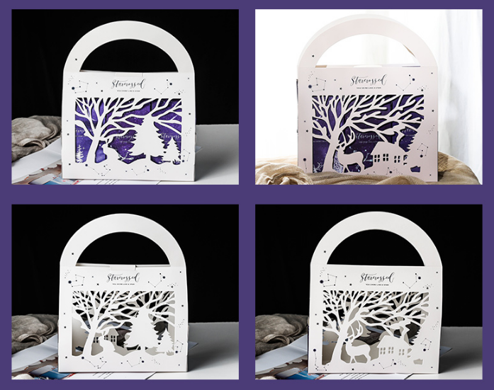 隨著時代的變遷,賀卡也跟著“與時俱進”了。那種風格千篇一律古板單一的賀卡已經逐漸淡出歷史的舞臺。賀卡激光鏤空機進行雕刻加工無需開刀模,快速成型,切口平整,圖形可任意形狀,賀卡激光雕刻加工具有很強的立體感,且賀卡激光雕刻加工款式新穎。賀卡激光鏤空機具有加工精度高、自動化程度高、加工速度快、加工效率高、操作簡單方便等特點,適應了紙品生產技術潮流,所以激光鏤空加工技術正在以驚人的速度在紙品行業(yè)內得到推廣和普及??梢詮氐卓朔鹘y(tǒng)喜帖賀卡印刷耗時、不環(huán)保的這些缺點。