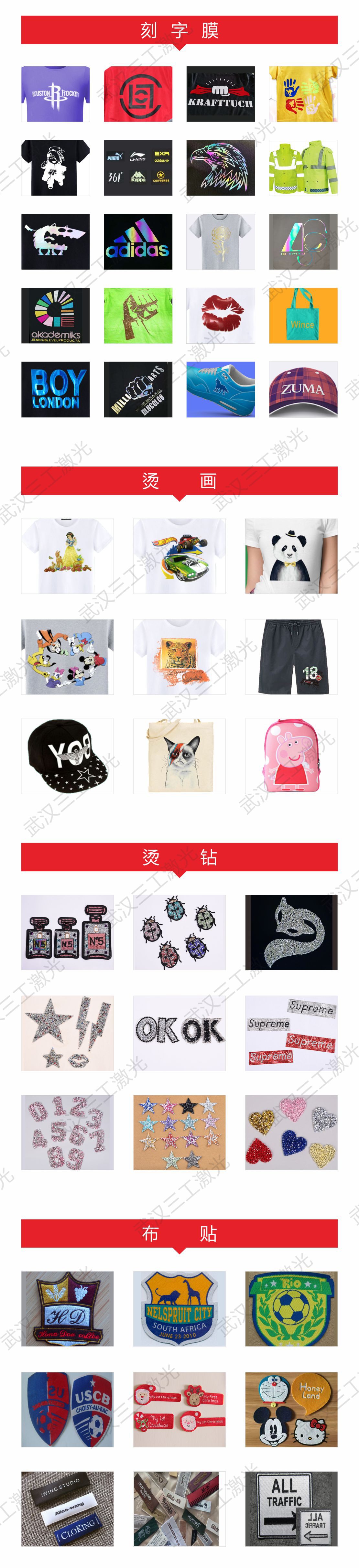 適用于運動服飾、休閑服飾、童裝、特種服飾、衣帽、鞋業(yè)、等行業(yè)的激光打標(biāo)和模切。