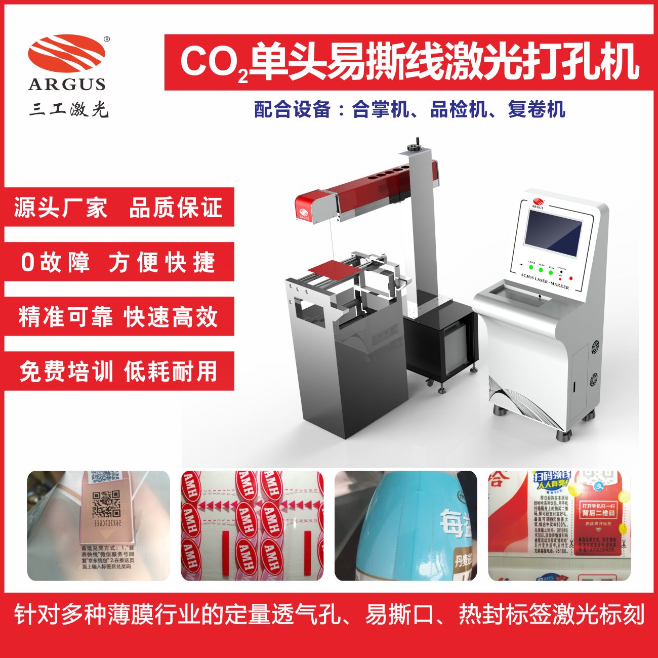 激光工藝能提供很好的解決方案。激光劃線是一種在多層復(fù)合包裝資料上利用激光來(lái)實(shí)現(xiàn)易扯開(kāi)效果的工藝,可以做到對(duì)包裝中某個(gè)薄膜層進(jìn)行劃線,而不損壞整個(gè)薄膜。激光將產(chǎn)品包裝進(jìn)行間斷破壞,形成一條間斷式劃線,被激光切割部分輕薄不穿透,易于用戶撕開(kāi),對(duì)于食品包裝的安全性無(wú)任何影響,食品也不會(huì)變質(zhì)。未被激光切割部分保留原始包裝厚度,這樣間斷式的激光切割機(jī)既更易于撕開(kāi)又具有足夠的安全性。將激光打標(biāo)機(jī)安裝在分切機(jī)或復(fù)卷機(jī)上,利用分切機(jī)或復(fù)卷機(jī)的張力控制,糾偏,收放卷等功能;通過(guò)激光器產(chǎn)生的光束,在設(shè)計(jì)好的易撕線處,均勻的切割出一條深僅若干微米的細(xì)線。從而實(shí)現(xiàn)制袋前在卷膜上打好易撕線達(dá)到破壞外層膜,保留阻隔內(nèi)層膜效果。既不破壞包裝材料的氣密性能,又具備撕裂時(shí)可規(guī)則地沿指定方向撕開(kāi)包裝袋口的功能。