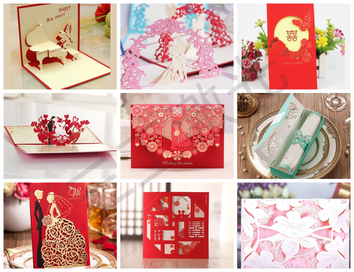 武漢三工激光提供各種賀卡、紙張、請(qǐng)柬、喜糖盒,光影紙雕、蛋糕插牌激光切割鏤空加工,專注于高品質(zhì)的激光效果。