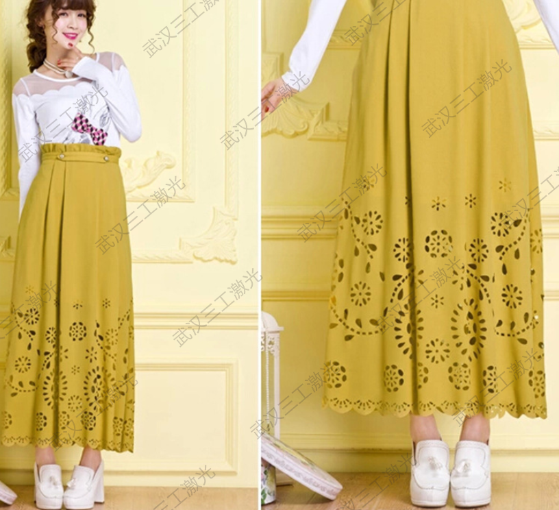 服裝面料激光打標(biāo)機(jī)激光加工設(shè)備,集激光切割、激光鏤空、激光雕花、激光燒花、激光打孔、激光流蘇熱切于一身,極高的工作效率與優(yōu)質(zhì)加工效果并存,適合在紡織面料、皮革、麻棉、牛仔布、毛料等服裝面料上進(jìn)行激光加工。只需要一臺服裝面料激光打標(biāo)機(jī),就能滿足您所有激光鏤空的愿望!