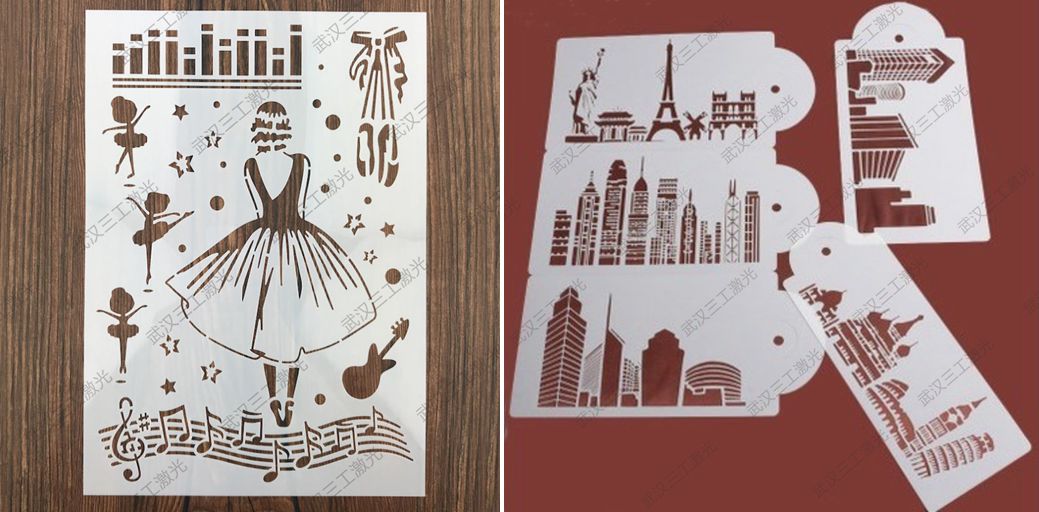 傳統(tǒng)的繪畫模板制作耗時周期長、樣式比較單一,而新興的塑料繪畫模板激光鏤空雕刻技術(shù),則是由電腦控制的無接觸式加工方式,圖案可以任意設(shè)計, 設(shè)計好的圖案立馬可以投入生產(chǎn)加工,無耗材,可以滿足多樣化的需求。同時激光鏤空雕刻的繪畫模板精度高,可達(dá)0.01mm,品質(zhì)好!塑料片材制作的繪畫噴繪模板采用激光鏤空機(jī)擁有魔法般神奇的加工效果。噴繪模板,眉卡,繪圖模板、賀卡、喜帖等傳統(tǒng)加工方式由于其耗時、不環(huán)保等缺點逐步受到淘汰,線條細(xì)膩,個性化強(qiáng),精細(xì)度高、切口漂亮無碳化痕跡、速度快的繪圖模板激光鏤空,因其高效率、高精度受到廣泛青睞。