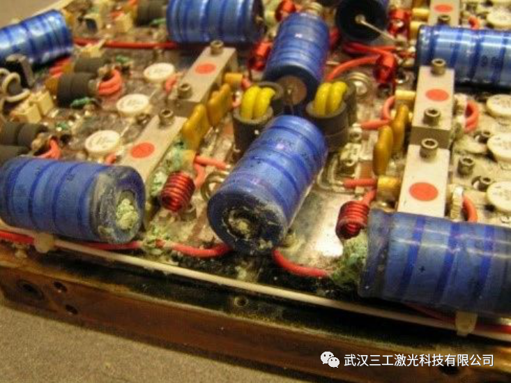 對(duì)于循環(huán)用水冷卻的激光器、高速振鏡驅(qū)動(dòng)板以及光學(xué)鏡片等,在高溫高濕的環(huán)境中易產(chǎn)生凝露。這可能會(huì)導(dǎo)致電子模塊被水露浸泡而短路燒毀;光學(xué)鏡片因附著水霧而產(chǎn)生污染甚至燒毀。