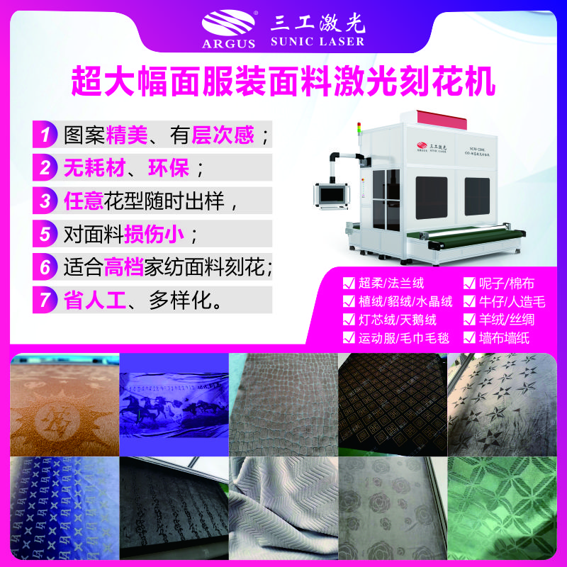 由于國(guó)家的環(huán)保政策日益嚴(yán)苛,傳統(tǒng)的爛花、絲網(wǎng)印花工藝處于逐漸淘汰的趨勢(shì),絲網(wǎng)印花逐步被熱轉(zhuǎn)印花取代,而伴隨著激光刻花的不斷升級(jí)完善,完全能替代部分爛花和壓花的工藝,特別是針對(duì)于短毛絨布。