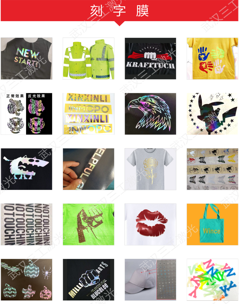 熱轉(zhuǎn)印刻字裝飾膜作為互聯(lián)網(wǎng)時代的新技術(shù)新產(chǎn)品,擁有無需制版、環(huán)保、操作簡單快捷的特點(diǎn)。傳統(tǒng)刻字膜刻字機(jī)角度、速度等等因素都容易造成產(chǎn)品質(zhì)量問題,速度太快容易出故障,刻不斷等等。而采用激光打標(biāo)技術(shù)進(jìn)行刻字膜的雕刻,速度超快精度更高,電腦 精準(zhǔn)控制精度可達(dá)0.1mm,制作的刻字膜圖案更精美。設(shè)備可帶CCD定位系統(tǒng),針對各類燙畫以及服裝裁片的印花圖案可以進(jìn)行精準(zhǔn)雕刻裁切!