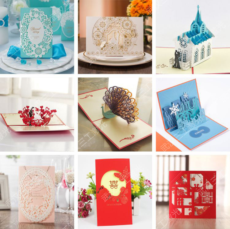 武漢三工激光紙張激光鏤空機(jī),從根本上打破了傳統(tǒng)紙張模切技術(shù)局限性,激光鏤空機(jī)進(jìn)行雕刻加工無需開刀模,圖案形狀可任意設(shè)計(jì),可通過繪圖軟件設(shè)計(jì)好圖案導(dǎo)入操作系統(tǒng),幾秒至十幾秒的時間一幅精美的鏤空圖案就誕生了。并且激光鏤空機(jī)速度快、切口平整、線條細(xì)膩、精細(xì)度高(可達(dá)0.01mm)、切口漂亮無碳化痕跡。激光鏤空雕刻本身就具有很強(qiáng)的立體感,也經(jīng)常被用于立體紙模拼圖、立體賀卡、立體書籍以及各類剪紙工藝品等行業(yè)的加工。下面呈上一些樣品工大家賞析!