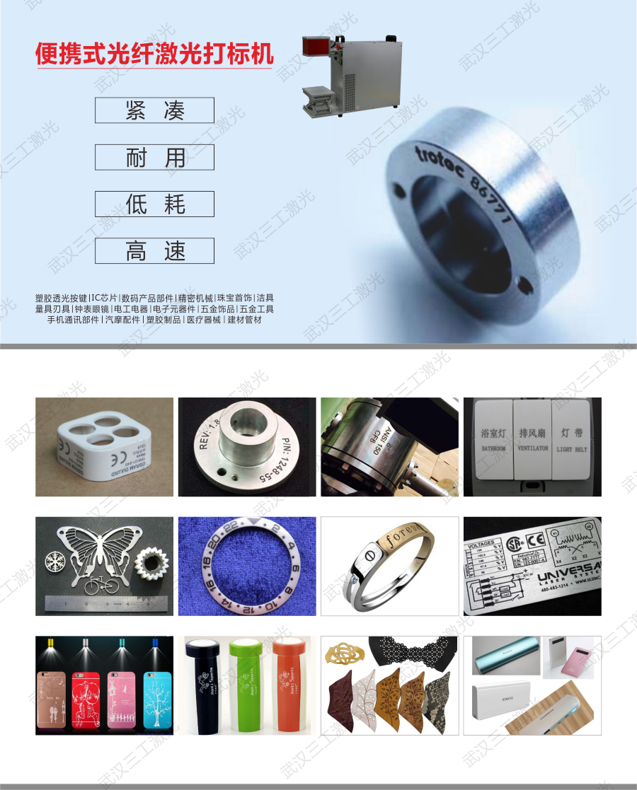 設(shè)備簡介該設(shè)備適用于電子元器件、通訊、汽車摩托車零配件、儀器儀表、航空航天、軍工產(chǎn)品、五金機械、工具量具刃具、潔具、醫(yī)藥、食品飲料、化妝品、藥品包裝、醫(yī)療器械、太陽能、工藝品等領(lǐng)域的各種金屬和部分非金屬表面打標。適用材料各類金屬材料和部分非金屬材料。主要技術(shù)參數(shù)